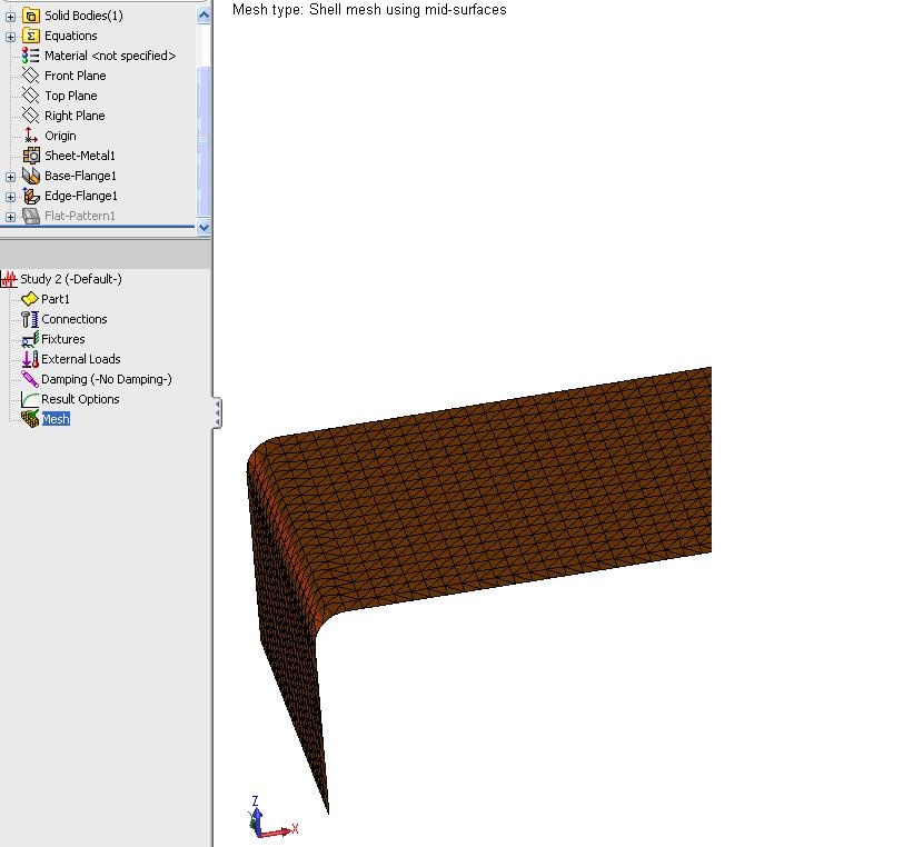 Trying to do a linear dynamic analysis of the model now, however,cosmos will no longer treat those sheet metal parts with a shellmesh and it wants to mesh them as a solid, which of course I don'twant because I can't get enough elements across the thickness tomake the results accurate without cosmos generating nearly amillion elements which takes too long. If I right click on thesheet metal part in the parts list it gives me a "Treat as sheetmetal" option, but selecting it does nothing. Can anyone tell mewhy I cannot use a shell mesh like normal on those sheet metalparts in the dynamic analysis?