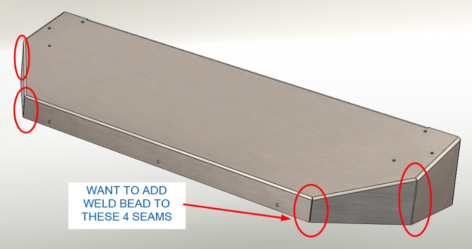 The attached sheet metal part will be manufactured with welds to close 4 of the seams for aesthetics.