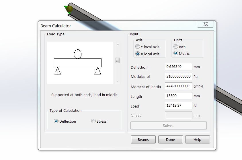 Trying to run a simple beam simulation in solidworks. I have used one of my own excel calcualtion sheets, and also the beam calculator in solidworks to predict the deflection of the beam under its own weight. The 2 calculation sheets come with very similar values, but then the simulation is quite far out. Has anybody got any ideas or suggestions, i have a feeling it is down to either a load or a fixture but cant work it out.