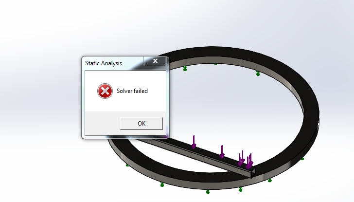 I'm a beginner to SolidWorks simulation. Anybody can help me to do this simulation without fault. What is the reason I'm unable to get result.