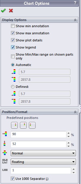 I have run a static simulation on one of our components. In the chart options I have checked the "Show max annotation" indicator. When I publish the report the "max annotation is so small that I can't even read it. Also the legend does not show up on any of the plots (stress, displacement, strain or FOS). Is there a setting that I have unknowingly turned off.