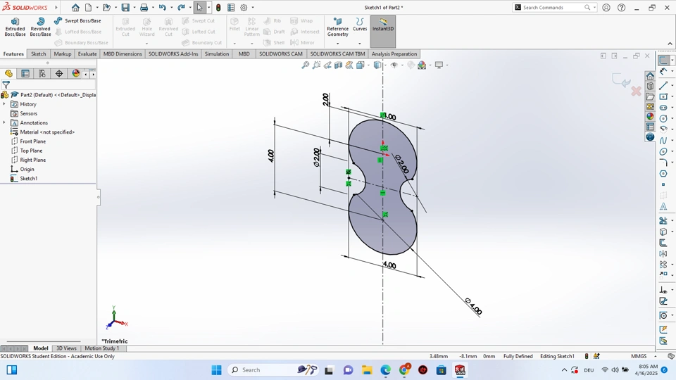 I try to generate a peanut like shape using revolved around the vertical central line shown in the sketch but I keep getting that error message ;Sketch is open, self intersecting, or intersects