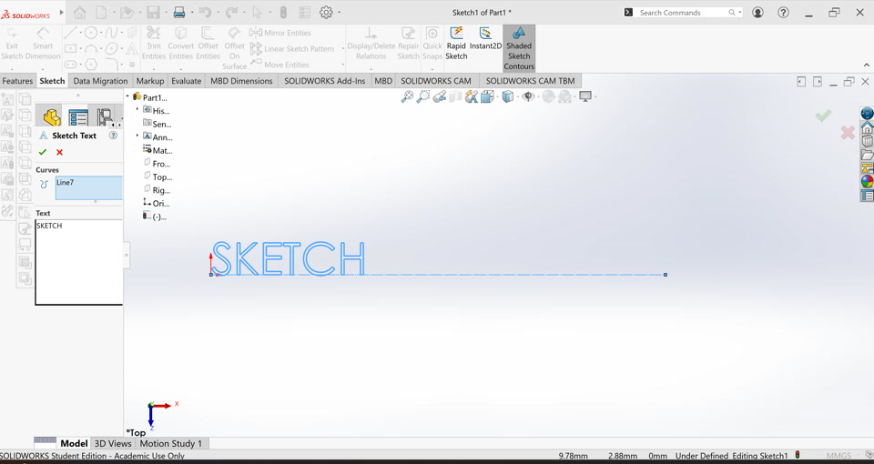 I went to make a part I wanted to emboss some lettering onto the face. I went as normal making a construction line and then selecting the text tool. After typing in the words I went to change the size and font of the text but the selection was not there. In the image, you can see that there are no buttons underneath the text box, like there usually are. Does anyone know why this may have occurred and how I can get it back to being able to change the font size and type?