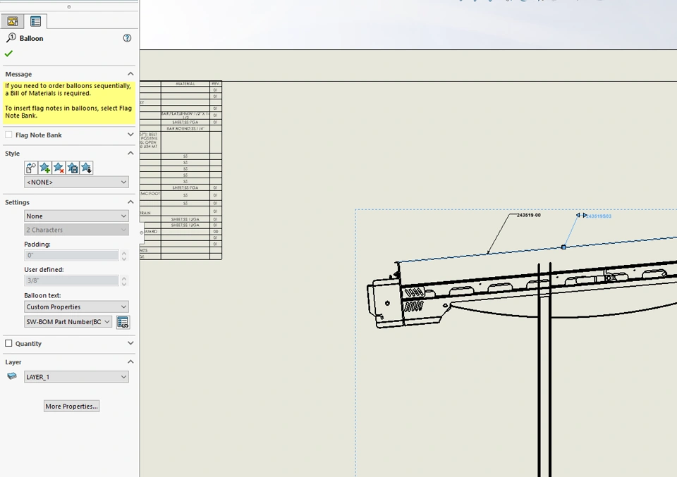 I am trying to get my work to switch to SW based BOMs instead of Excel based BOMs. The problem we are having currently are balloons. We like the balloons to show the part number which includes configs so the file name setting will not work. Also the part number BOM setting will not work because it balloons the part level and not the sub assembly shown. In the image below both balloons have the same settings but one does not update even if I rebuild it only works if I change the custom property to something random and click back onto SW-BOM Part number. How can I get this to be correct off the bat. I have already changed my document properties to automatically choose these settings for balloons. The right balloon shows a sub assembly the left is the top assembly. The right one is correct.