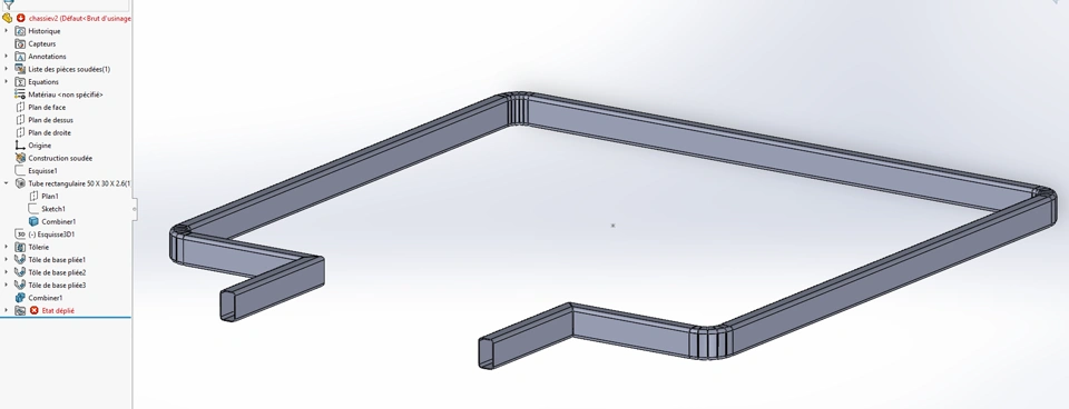 I’m currently trying to model a part in SolidWorks to be cut on a Trumpf LaserTube 5000 machine. The idea is to start with a 50x30x2.6 mm rectangular tube, add some cutouts and holes, and generate a flat pattern to send to the workshop.