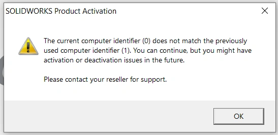 And solidworks would not start. And also could not activate or deactivate license. This was a PC which had a processorupgrade. Old processor is gone so building back is not an option.
