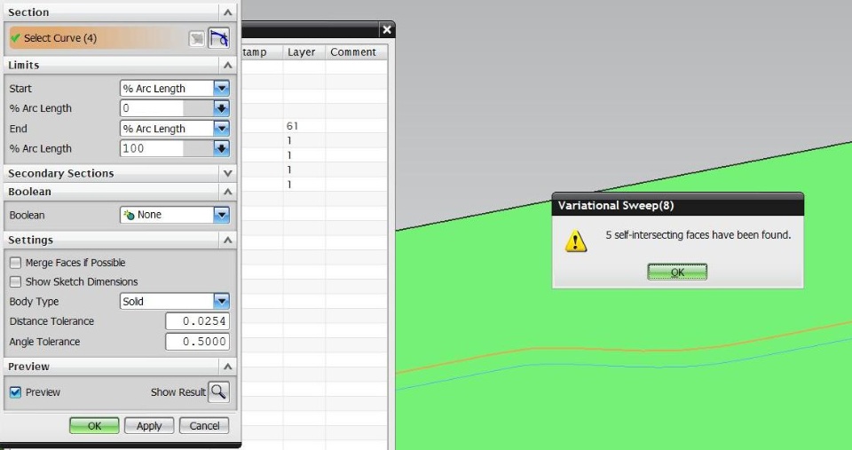 With the entered inputs, SolidWorks would advise me that there wasan auto-intersection geometry and that there were some possiblesolutions, always and however explained and let to the user whichuse.
