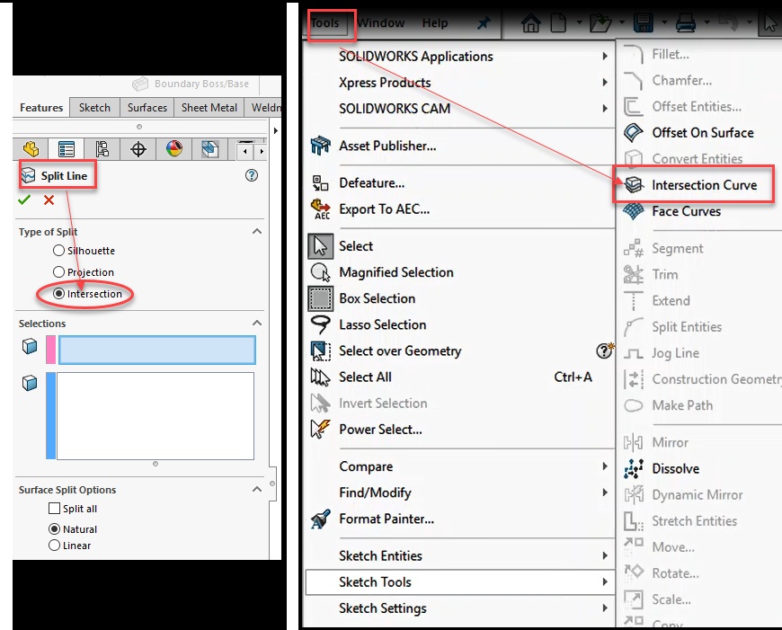 Do you see any difference between Split Line Intersection and Tool Intersection Curve?