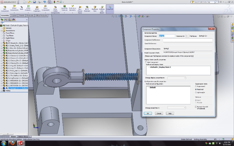 I am trying to make this spring flexible, so that the spring does not go through the other parts. It will not allow me to make the spring flexible. Any Ideas?