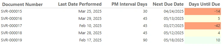 When a technician completes a task, they check out the file, update the Executed Date, and check it back in. That’s it—the cycle resets automatically.