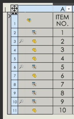 Some strange icons are showing in a BOM table that I have never seen before. Does anyone know what the table/spreadsheet looking icons mean?