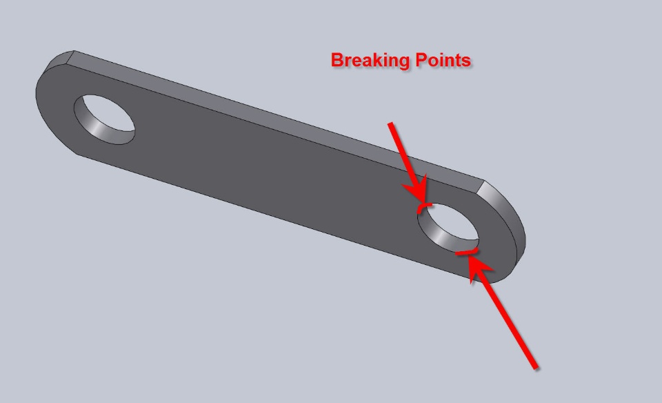 Test occurs with an hydraulic powered machine, and two pins are inserted in the holes you see in the picture. One pin is kept fixed, while the other pin is pulled.