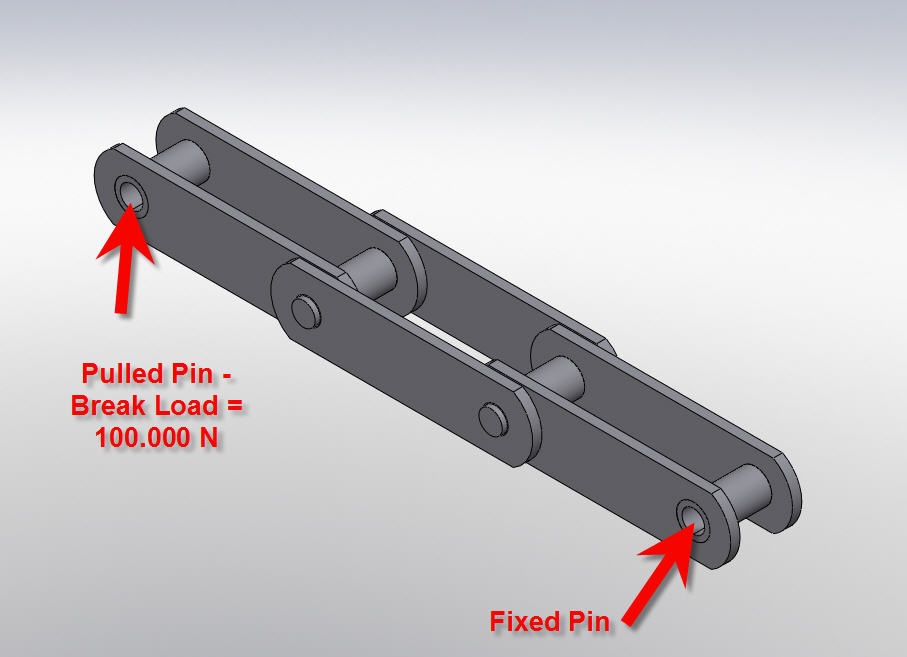 I tried to model this chain in a Similar way to the chain you find in the SolidWorks Simulation training manual, but I'm not getting realistic results either: