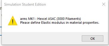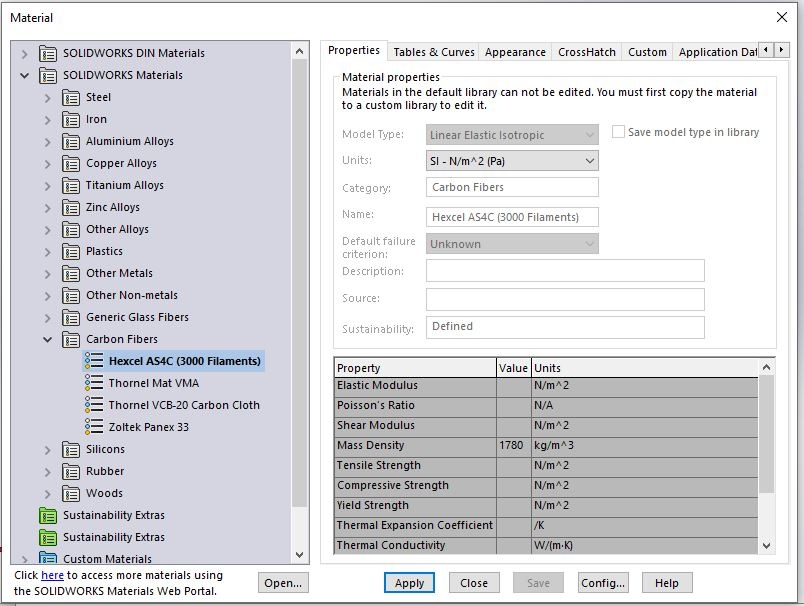 Here is the properties of the carbon fiber I am trying to use, its missing all of the moduli needed for simulation.