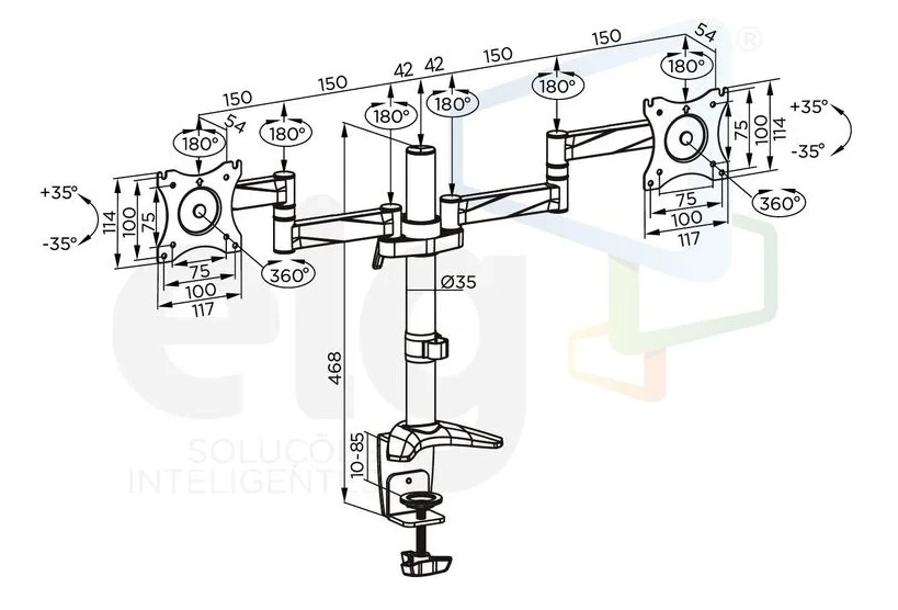 alguem pode fazer esse desenho de um Suporte para 2 Monitores Articulado 15 a 27 Base Morsa F50D2 ELG no solidworks por gentileza