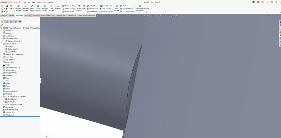 I am trying to fill the gap between these two parts. To the left is a blade and the right a hub. I have tried a variety of methods such as an extruded surface which I converted to a solid and then attempted to combine with the two other parts. This failed with the "zero thickness geometry error". Anything helps, thank you.