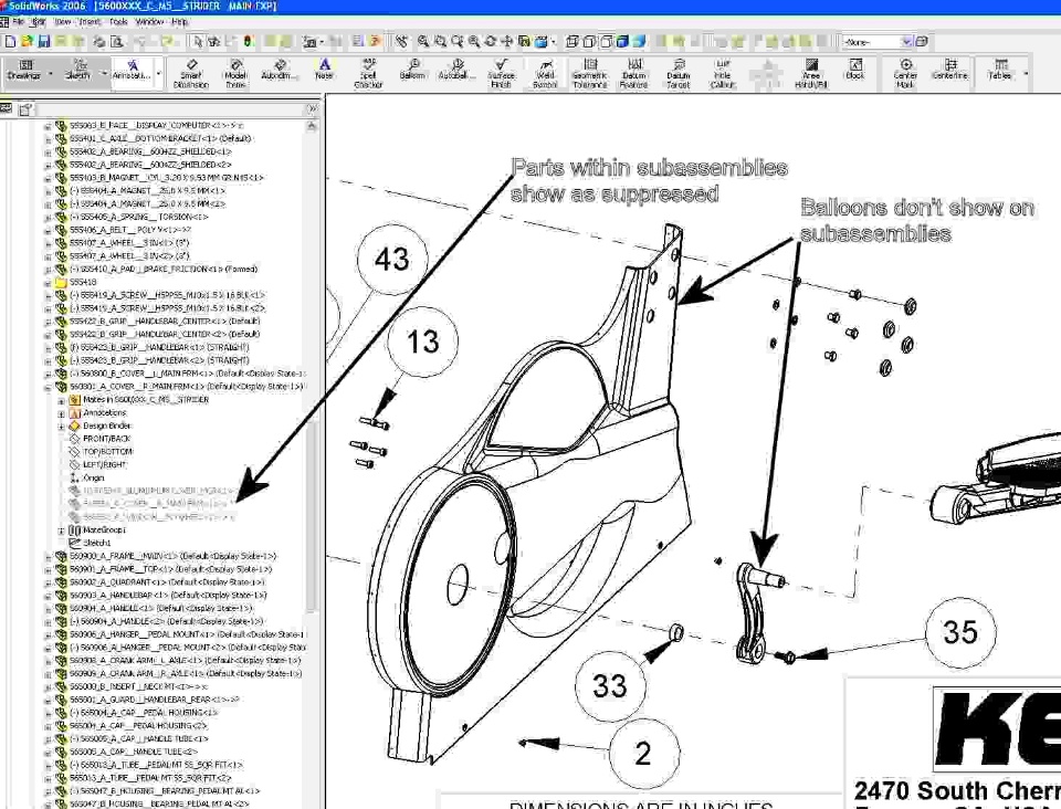 Subassemblies within top level drawing are not showing theballoon. The assemblies show up in the Excel based BOM with thecorrect item numbers. The balloons will appear if I bring inanother drawing view from another configuration, and balloon thesame items. Although, they disappear after I save, close, andreopen.