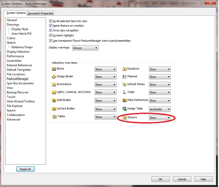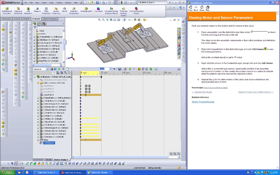 Early in the tutorial there is an instruction to right click the sensor in the feature manager tree... I see no sensor in the feature manager tree.