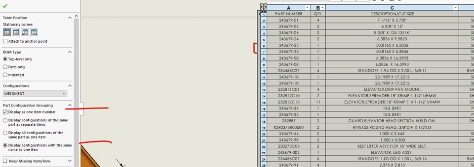 I have my BOM where I have a LH and a RH configuration. I want them displayed as the same item number since they have the same name. Why does it show up as two separate item numbers? The only way I make it work is by changing the configuration properties of the LH part and entering in a user specified name. This fixes the problem but makes it tedious when we reuse the part. Is there a better way?