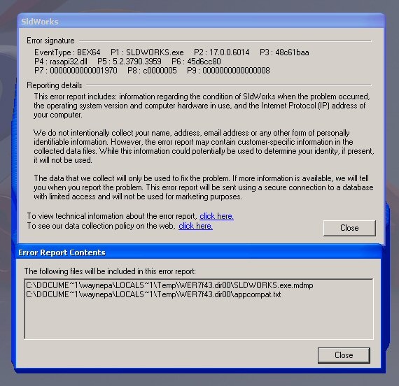 Any suggestions? The VAR is suggesting a Windows wipe. I think thistactic is a little extreme and discounts the fact that SW 2007 and2008 ran fine as do numerable other app's on this computer.