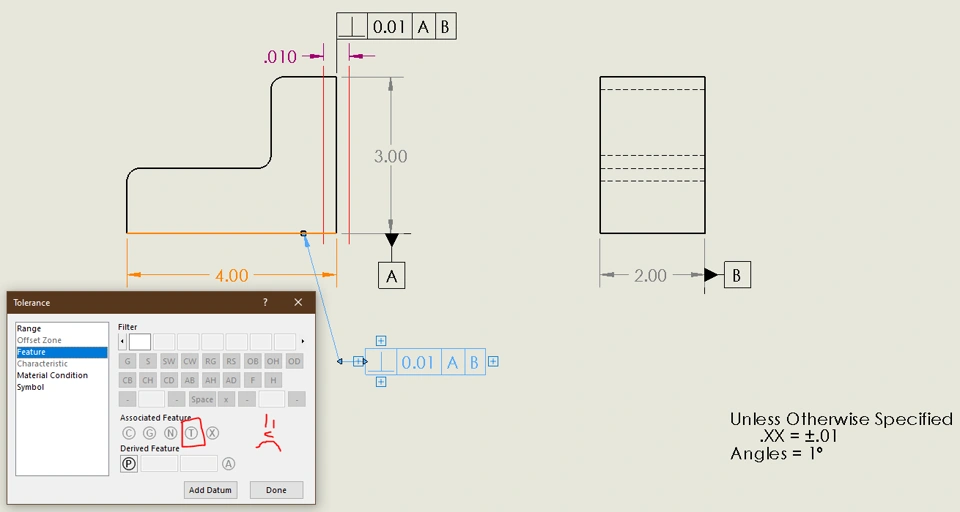 Encountered an issue with my SolidWorks where the tolerance modifier symbol for Tangent Plane is greyed out regardless of previously specified information within the feature control frame.