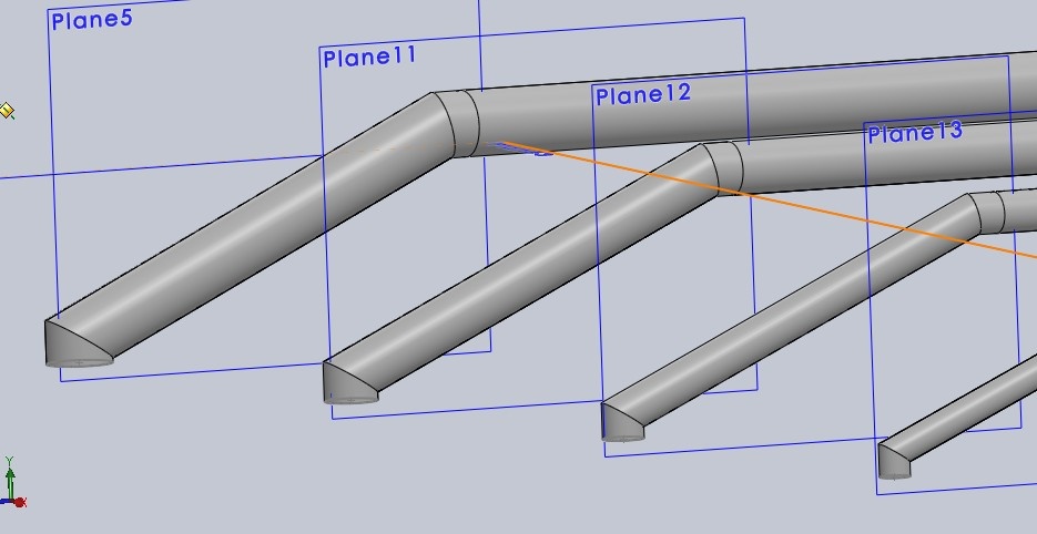 I have attempted to create a swept boss through a simple 3 line sketch I have made with a diameter of .013in. I have been able to create this same boss through the same 3 line sketch with larger diameters. I keep getting an error telling me that I have intersecting lines, decrease the angle of the first two lines, the sweep works. I have attached pictures to illustrate the issue I'm having.