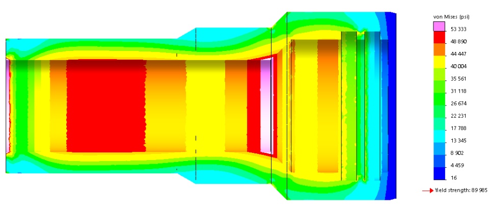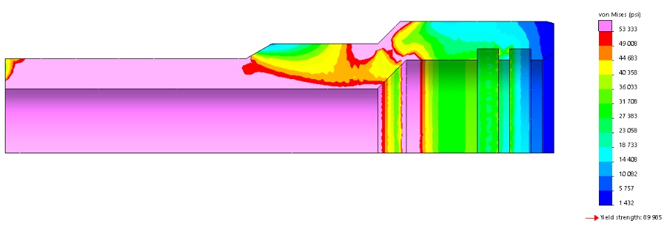 When I run the part as a solid (first image below), only a small section of the part is over stressed (pink section). When I analyze half the part using the cyclic symmetry fixture (second image), the stress results for the part changes. At a quarter section using the symmetry fixture (third image), a large section of the part is show to be over the allowable stress. This pattern continues as I decrease the size of the section.