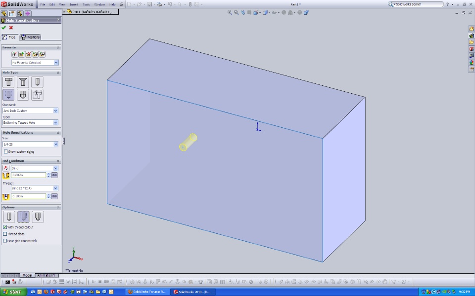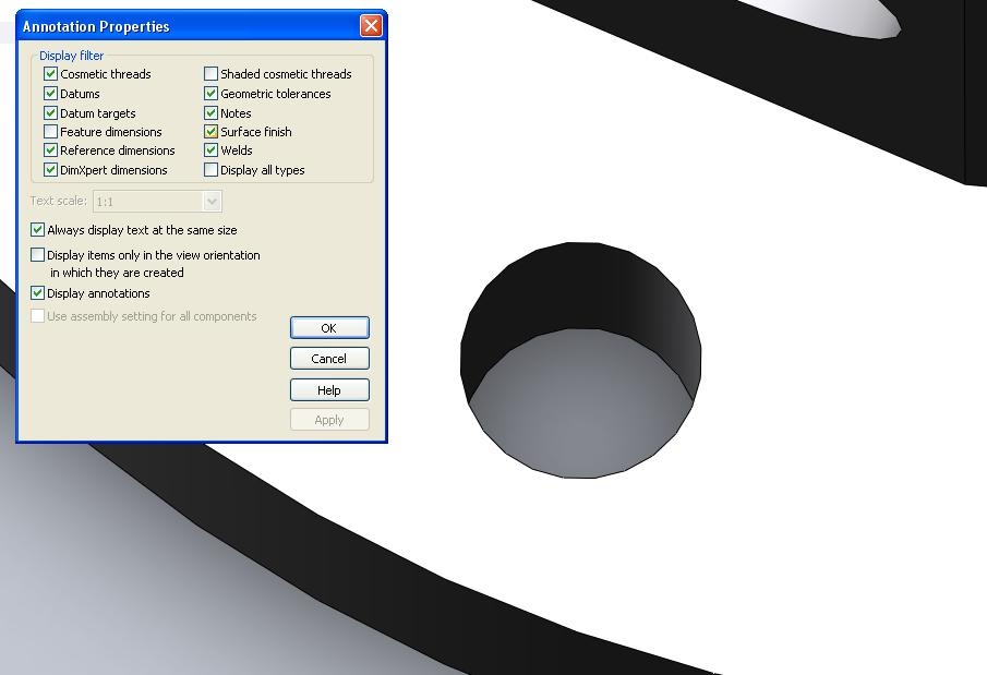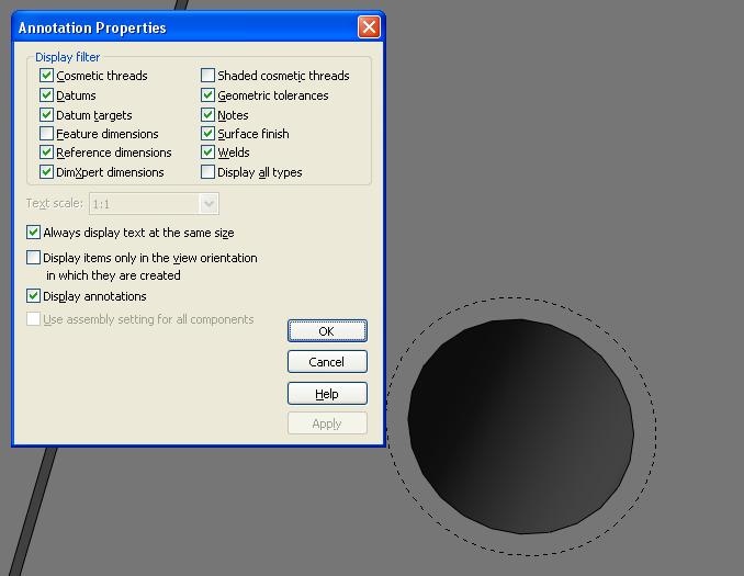 I'm making a new part and I used the Hole Wizard - Straight Tap feature. When I previously created parts (1.jpg), the cosmetic thread would show up displaying what the outer diameter of the thread would be. However, when I create new parts (2.jpg), the dotted line wouldn't appear anymore.