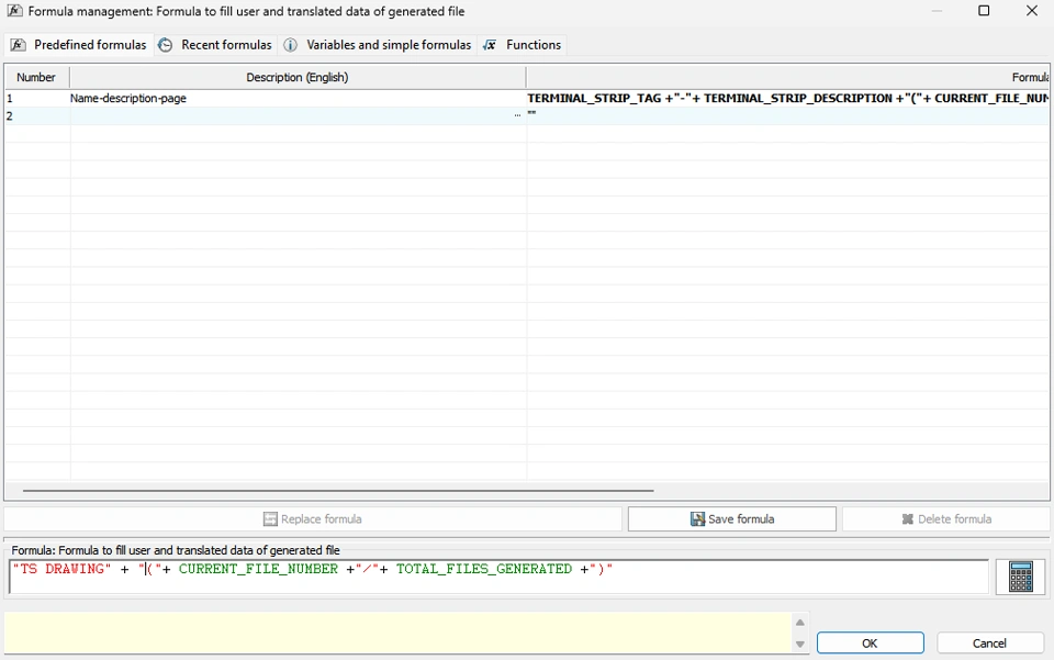 Instead of 21 - 24--24+-FTB1-FTB2-FTB3, i would like it to show just "21 - terminal strip drawing 1/x" like my formula.
