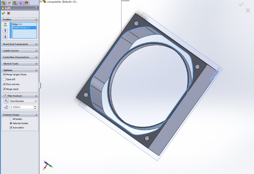 I am having a problem using the Loft Tool. I was able to get it to do normal loft between the following surfaces. However, when I try to get a thin loft to work, I get the following error.