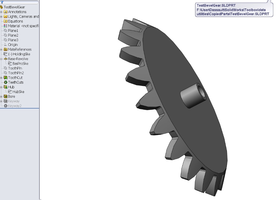 After sorting out the toolbox file locations, I have started exploring a bevel gear, and two issues have arisen:-