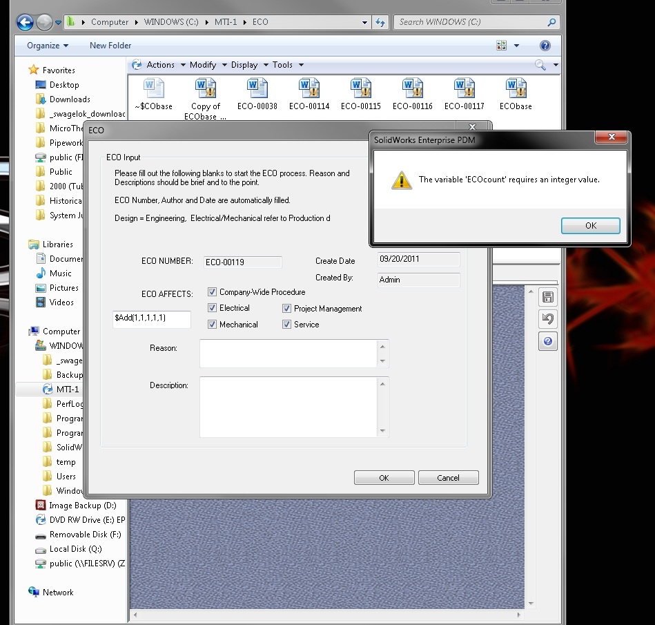 I am currently in the process of setting up our ECO process and am using a template to gather information from the user; however, I've run into an issue with translating check boxes into the Workflow (transitions). We have just installed EPDM 2011 SP0.