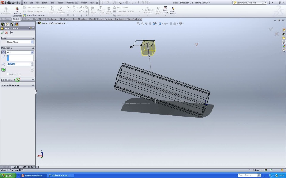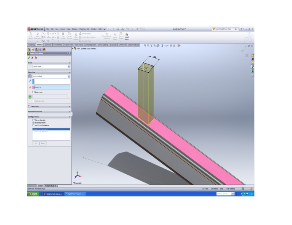 I have a vertical gusset that was created in context in an assembly. It meets an RHS at an angle and I am wanting to trim the bottom face of the gusset to match the angled member. The gusset is a boss extrude and as drawn the centreline of the gusset meets the RHS surface ie. half the thickness sits clear of the RHS and half the thickness interferes with the RHS.. To date this has defeated me