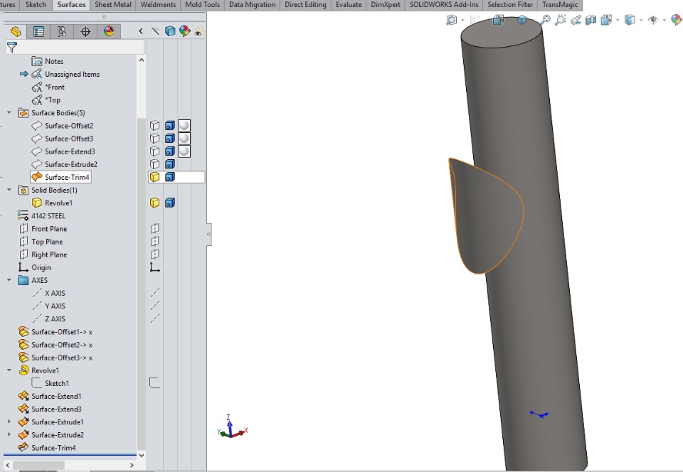 I have a surface, "Surface-Trim4" That I am trying to extend .5mm in all directions (same surface).