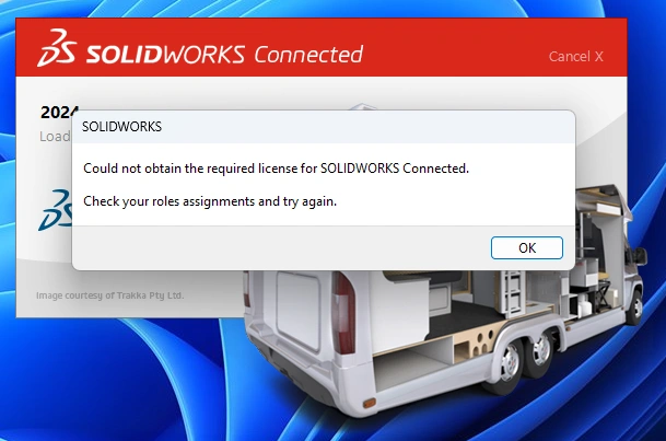 I am trying to install SW Connected on a new computer with a fresh installation of windows. I keep getting this error when launching SW from the 3D Experience dashboard. I've installed it on a different computer before this one without any issues. Any suggestions as to why this is happening?