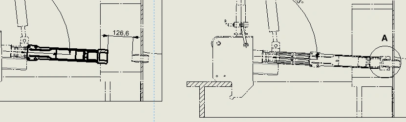 - retracted tool (on the left),