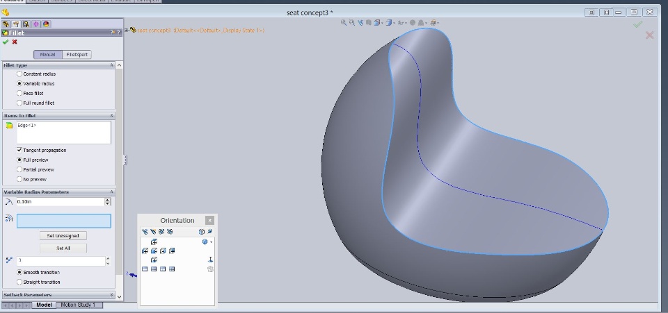 Hello, I am trying to add a variable radius fillet to the part below along the edge shown in light blue. The problem I am having is there are no control points to specify different radii. Any suggestion on how to get points along this curve?
