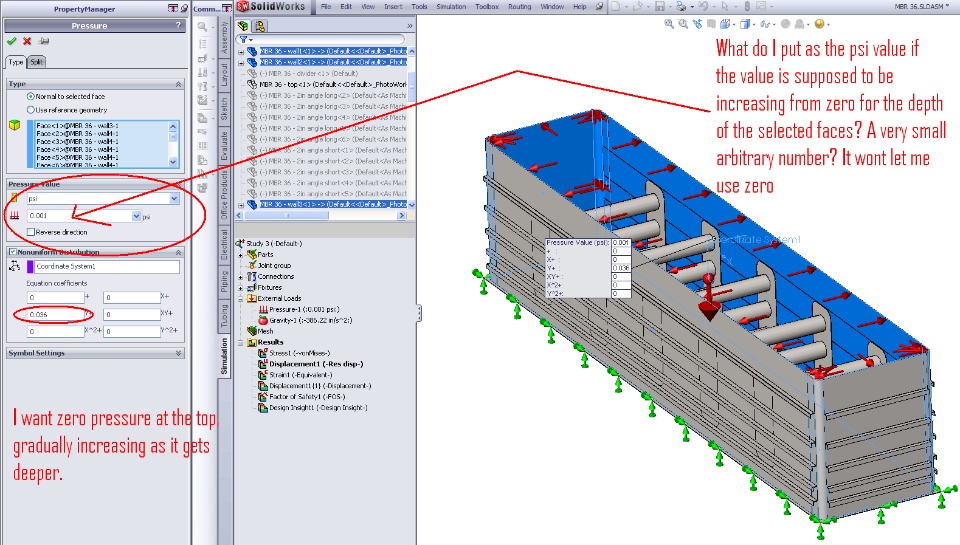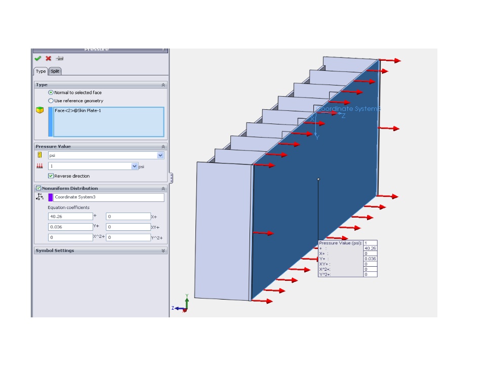 I can calculate the pressure, stress and deflection mathematically, however since the force distribution is trapezoidal, I was wonder if any could help me on how to apply this force in SolidWorks simulation, so that I can analyze it.