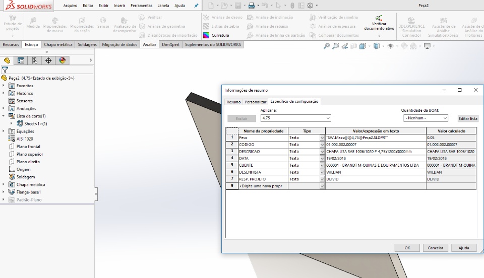 welding with cut list, but does not update body config, I use a software that manages production and cost of expenses etc ... Sinprod also makes material registration in the config of the piece both custom and special (project table or additional configurations). by registering a material in a cut list body (sheet 1, Sheet 2 ...) When you change the design table the body does not update the settings keeping the same for both ..