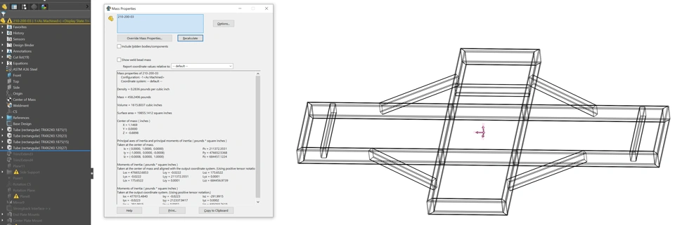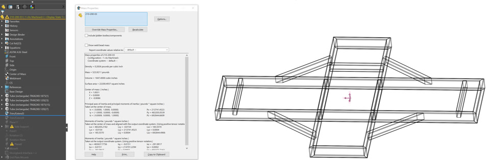My weldment mass increases when I trim the corners and remove material. I don't understand why this is happening. I am not extending any beams, only trimming: See screen shots below. Any insight would be greatly appreciated.