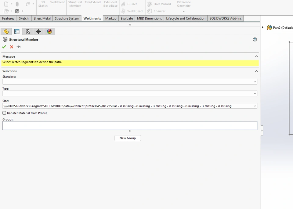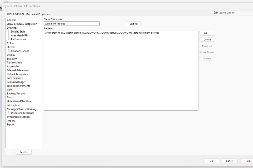 I'm using solidworks maker and since the last update i cannot use weldments anymore. I have uninstalled and installed the program. Tried every tip on the inter net. Checked that all the path are correct. I have downloaded a few zip folder (As,Din,Iso) through the design library. It always comes up with the same issue. It looks like it uses one of my old projects as a default. I cannot find a folder for wledments in my Solidowks folder on my pc.