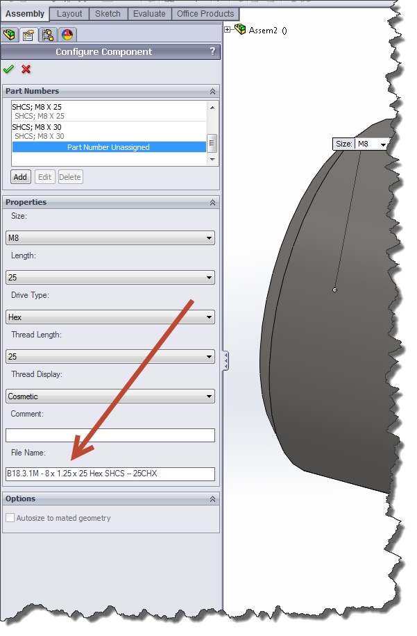 I've searched the Forum high and low. The Help file is no help. What is the File Name option in the Configure Component dialog of Edit Toolbox component for? I've found that I can change it. However, on subsequent insertion of the Toolbox components with the same specifications, the file name does not stick. It does, however if I assign a part number. Which raises another question. When I enter a part number for that particular Toolbox component, I don't see it reflected in the Wizard. What gives?