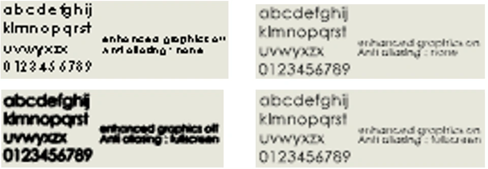 I find that turning both settings on would produce the best results so far. Although it seems I got an answer, it makes me wonder - Which other settings allow us to control the font display? One would assume that 'Enhanced graphics Performance' won't affect the graphics, but it does.
