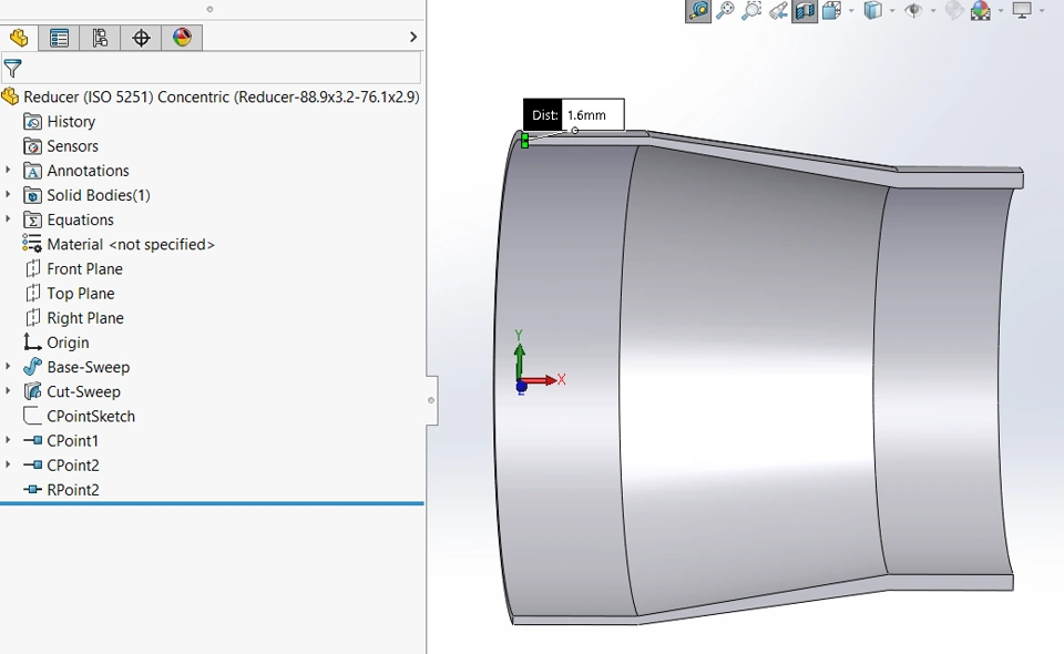More specifically, im working with a 88.9x3.2 to 76.1x2.9 reducer. The 3D model, however, shows a thickness of 1.6mm for the diameter of 88.9, instead of the desired 3.2mm: