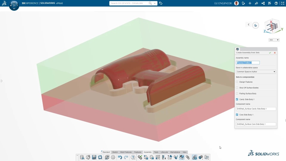 Create Features from Feature Sets The Create Assembly from Feature Sets command from the Assembly section to create mold from feature sets. You can create the mold from the feature sets.