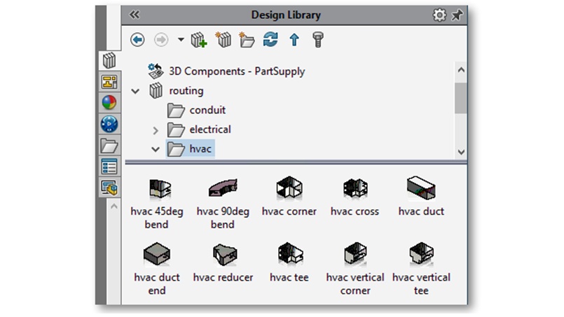 Allowing Parts and Assemblies in the Design Library Parts and assemblies now show in the Design Library. The "Add to Library" command is available when you right-click parts and assemblies in the Feature Manager design tree, or faces in parts, assemblies, and drawings. You can add components to the Library similar to SOLIDWORKS Desktop.