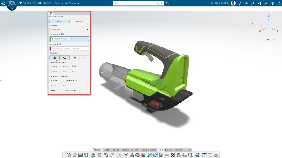 - Enhanced Mass Properties Interface
