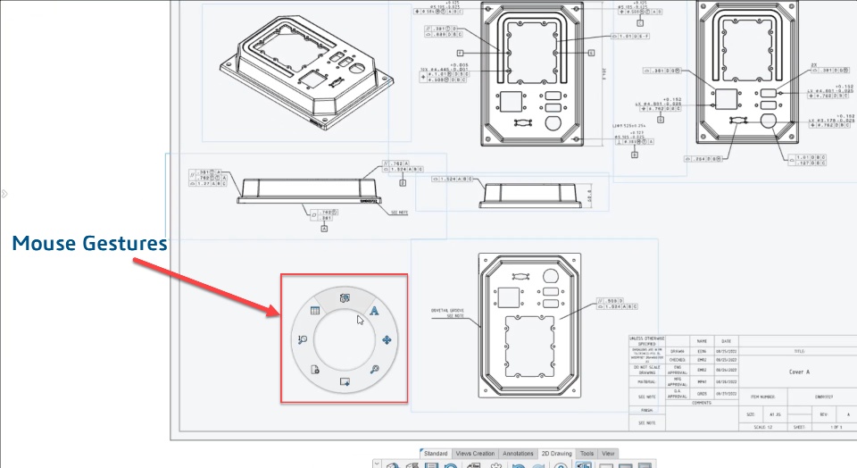 Now you can access drawing commands with mouse gestures. It helps in rapidly switching between commands while working.