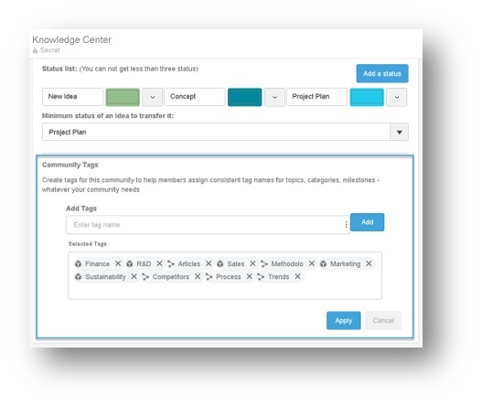 Now 3DSwym community Administrators will be able to define the User Tags of a new type called Community Tags, which will be used to tag content on the community. Users will then be suggested to Tag content with those Community Tags. These tags appear at the top of the Community Homepage, and will quickly help viewers sort the content to view. Community Tags enable community members to organize community content using a common set of relevant tags that can be suggested and applied by a simple click, eliminating spelling inconsistencies and easier content filtering.- Create a Community Tag (in Community preferences)