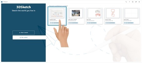 3DWhiteboard and 3DSketch widget apps now have homepages to simplify access to your Whiteboard or Sketch content published in 3DSWYM. On the Homepage, user can create "New Content" or open "My Content".